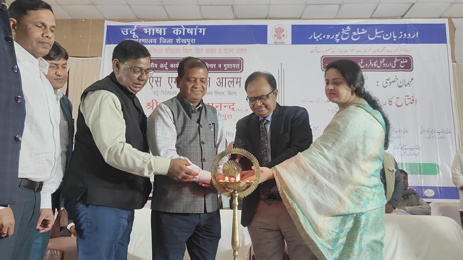 शेखपुरा: बिहार सरकार के उर्दू निदेशालय  मंत्रिमंडल सचिवालय विभाग की योजना के अंतर्गत, राज्य की द्वितीय राजभाषा उर्दू के विकास और प्रसार के लिए शनिवार को स्थानीय टाउन हॉल में एक भव्य जिला स्तरीय उर्दू कार्यशाला, सेमिनार-सह-मुशायरा का आयोजन किया गया।