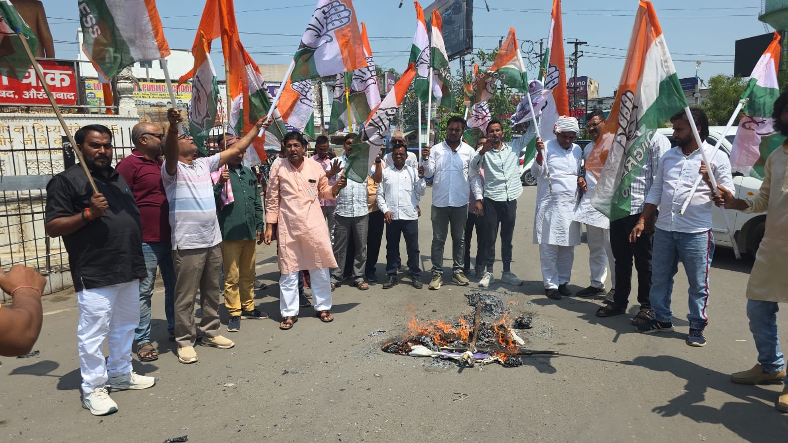 एलपीजी गैस संकट पर कांग्रेस का उग्र प्रदर्शन, प्रधानमंत्री का पुतला दहन