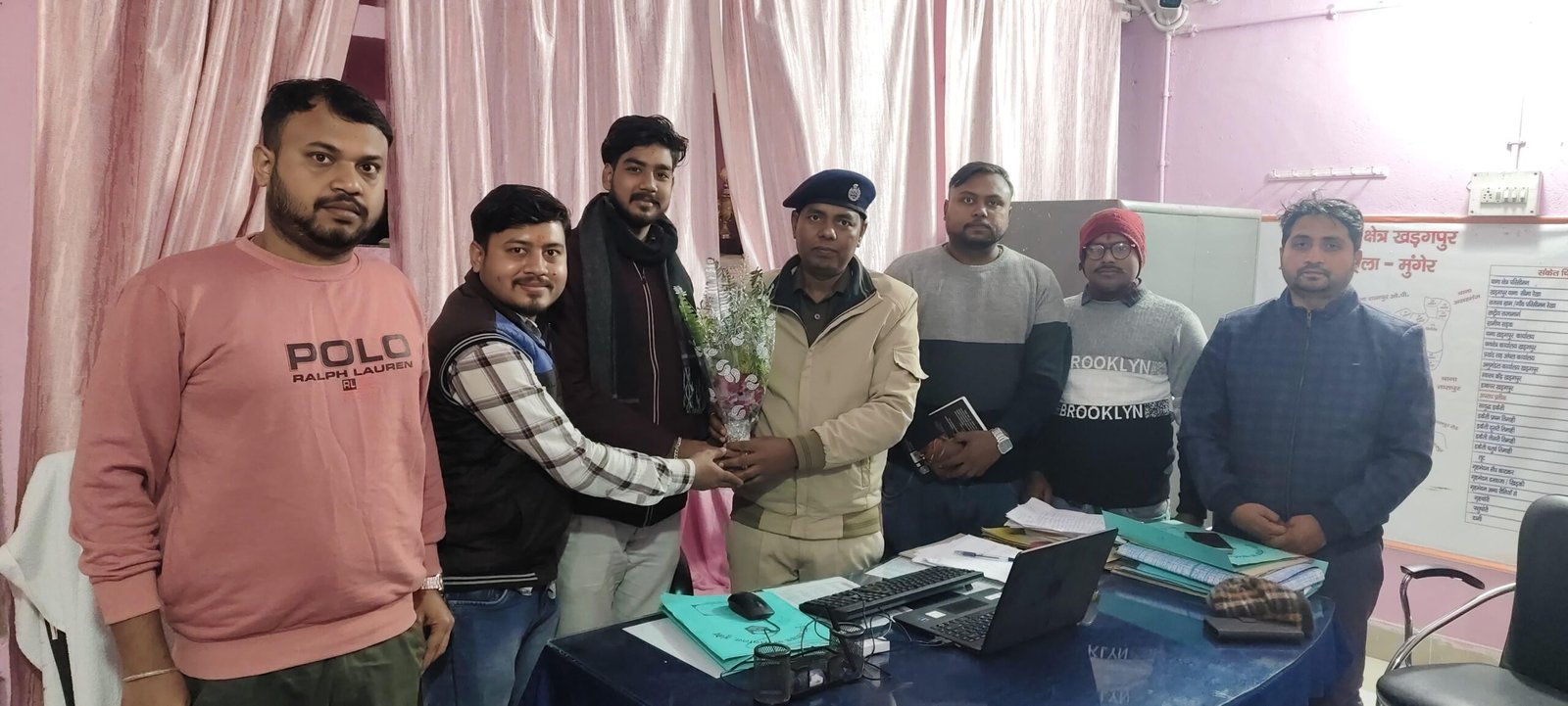 अखिल भारतीय विद्यार्थी परिषद (एबीवीपी) के प्रतिनिधिमंडल ने हवेली खड़गपुर थाना पहुंचकर नव पदस्थापित थानाध्यक्ष राजेश कुमार का बुके एवं परिषद की ध्येय यात्रा पुस्तक भेंट कर स्वागत किया।