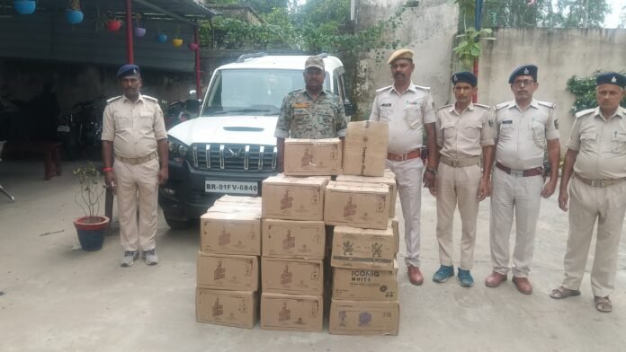 मुंगेर: गंगटा में अलग अलग ब्रांड के 825 बोतल विदेशी शराब बरामद, कारोबारी फरार, स्कॉर्पियो जप्त