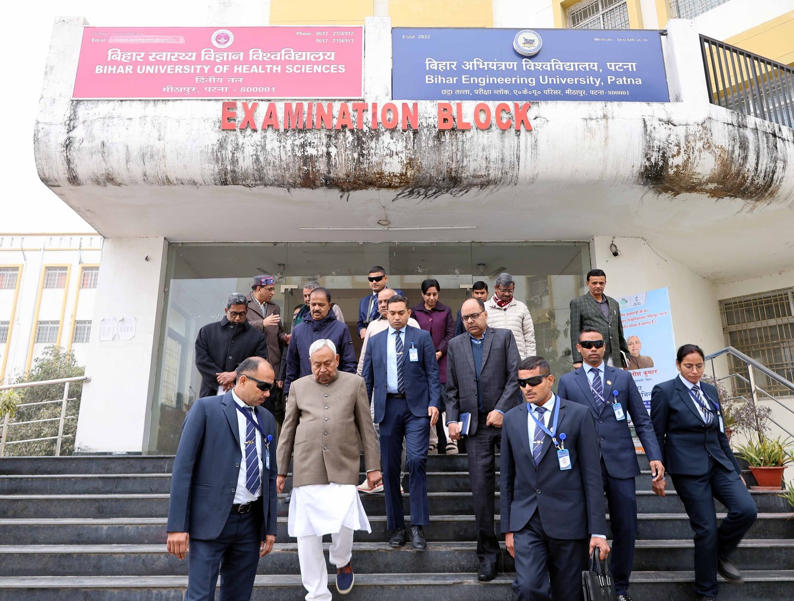 निरीक्षण के दौरान मुख्यमंत्री ने कहा कि बिहार के छात्र एवं छात्राओं को उच्च स्तर की तकनीकी शिक्षा प्रदान करने हेतु बिहार स्वास्थ्य विज्ञान विश्वविद्यालय एवं बिहार अभियंत्रण विश्वविद्यालय की स्थापना की गई। उन्होंने कहा कि बिहार स्वास्थ्य विज्ञान विश्वविद्यालय एवं बिहार अभियंत्रण विश्वविद्यालय के निर्माणाधीन सभी संरचनाओं का निर्माण कार्य बेहतर ढंग से और तेजी से पूर्ण करें। मीठापुर के इस क्षेत्र में चंद्रगुप्त प्रबंधन संस्थान, आर्यभट्ट ज्ञान विश्वाविद्यालय, निफ्ट, चाणक्या लॉ यूनिवर्सिटी एवं मौलाना मजहरूल हक अरबी एवं फारसी विश्वविद्यालय जैसे प्रमुख शैक्षणिक संस्थान बनाये गए हैं। यह पूरा क्षेत्र काफी अच्छा हो गया है। इन दोनों विश्वविद्यालय का निर्माण कार्य पूर्ण होने से यह क्षेत्र और भी अच्छा दिखेगा।