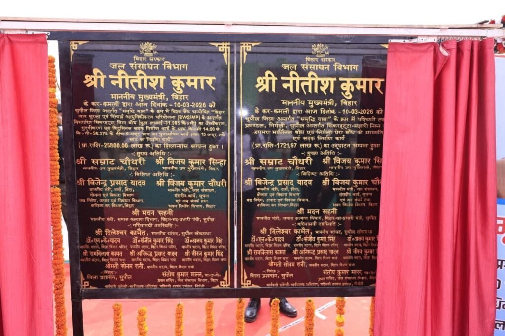 पटना: मुख्यमंत्री नीतीश कुमार ने आज समृद्धि यात्रा के क्रम में सुपौल जिले के निर्मली स्थित निर्मली रिंग बांध (सिपाही चौक) के जीर्णोद्धार कार्य का निरीक्षण किया। निरीक्षण के क्रम में मुख्यमंत्री ने 1721.97 लाख रुपये की लागत से पश्चिमी तटबंध प्रमंडल निर्मली, सुपौल अन्तर्गत सिकरहट्टा-मझारी निम्न बांध, डगमरा मार्जिनल बांध, निर्मली घेरा बांध की मरम्मति एवं सड़क निर्माण कार्य तथा 591.92 लाख रुपये की लागत से छातापुर एवं त्रिवेणीगंज प्रखंड में सूरसर नदी के निरंतर प्रवाह हेतु अवरोध हटाने का कार्य का रिमोट के माध्यम से शिलापट्ट अनावरण कर उद्घाटन किया। विश्व बैंक सम्पोषित बिहार जल सुरक्षा एवं सिंचाई आधुनिकीकरण परियोजना के अन्तर्गत विस्तारित सिकरहट्टा-मझारी निम्न बाँध (कुल लंबाई 31.985 कि0मी0) का उच्चीकरण, सुदृढ़ीकरण एवं बिटुमिनस सड़क निर्माण कार्य के साथ कि0मी0-14.00 से कि0मी0-26.275 के बीच 7 अदद स्टड का पुनर्स्थापन कार्य तथा 13 अदद नये स्टड का निर्माण कार्य का मुख्यमंत्री ने रिमोट के माध्यम से शिलापट्ट अनावरण कर शिलान्यास किया।