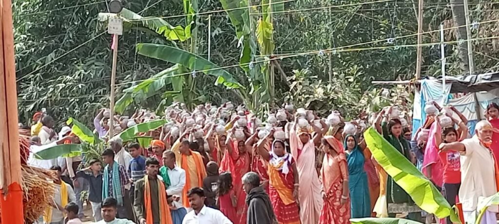 भागलपुर जिले के शाहकुंड/नाथनगर : प्रखंड अंतर्गत शिव सह दुर्गा मंदिर प्रांगण दरियापुर से शुक्रवार को भव्य कलश शोभायात्रा निकाली गई ।कलश शोभा यात्रा की शुरुआत विद्वान पंडित आलोक मूर्ति के द्वारा मुख्य यजमान सुभाष यादव व उनकी धर्मपत्नी एवं सभी सहयोगी यजमान के साथ-साथ सभी महिलाएं व कुंवारी कन्या के कलश के गंगाजल का संकल्प करवा कर दुर्गा मंदिर प्रांगण से कलश शोभायात्रा प्रारंभ हुई ।