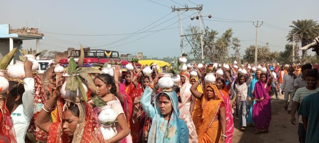 और मां शीतला स्थान, पहाड़िया स्थान के रास्ते चांद मिश्रा बासा होते हुए बेलखोरिया स्थित जमीन दरियापुर में नवनिर्मित श्री श्री 108 सर्वेश्वर नाथ महादेव के प्राण प्रतिष्ठा स्थल पहुंचे। इस कलश शोभायात्रा में कुल मिलाकर 651 कुंवारी कन्या व महिलाएं अपने सर पर कलश लेकर गाजे बाजे घोड़े रथ आदि के साथ नवनिर्मित मंदिर पहुंचे। ज्ञात हो कि महाशिवरात्रि के अवसर पर श्री श्री 108 सर्वेश्वर नाथ महादेव की प्राण प्रतिष्ठा के उपलक्ष पर कलश शोभायात्रा निकाली गई ।