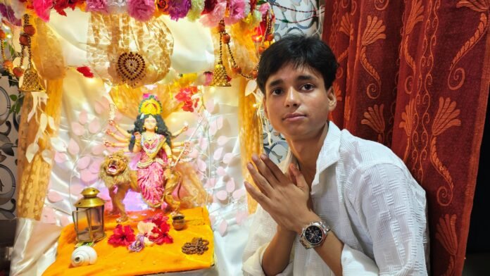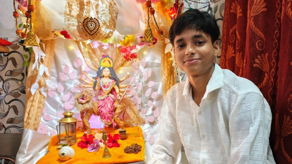 राजवीर हेब्रोन मिशन स्कूल में कक्षा 10 के छात्र हैं और पेंटिंग व कला के क्षेत्र में विशेष रुचि रखते हैं। उन्होंने 8 से 10 दिन की कड़ी मेहनत कर पुआल, फेविकोल, मिट्टी और विभिन्न रंगों का प्रयोग करते हुए प्रतिमा को साकार किया। इस बार प्रतिमा को सोने-चांदी के आभूषणों से अलंकृत कर श्रृंगारित किया गया है, जो देखने वालों को भक्ति और श्रद्धा से भर देता है।