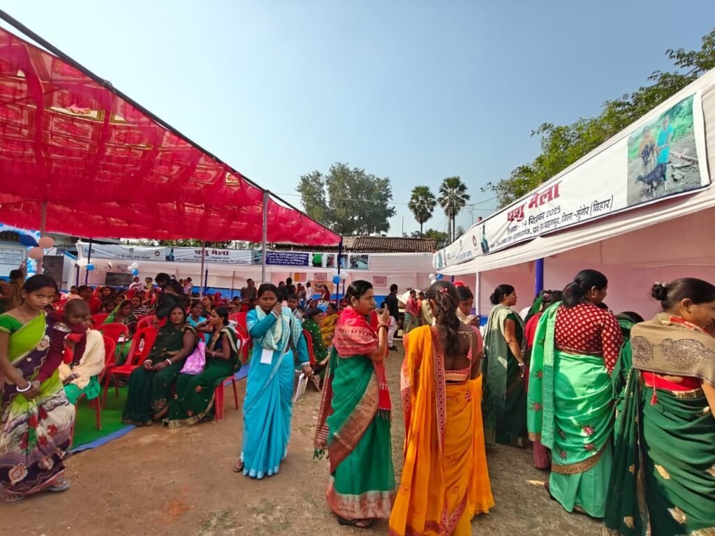 हवेली खड़गपुर प्रखंड अंतर्गत किसान भवन, मुज़फ्फरगंज (खड़गपुर) में रविवार को सेवाभारत एवं एसबीआई फाउंडेशन के संयुक्त सहयोग से भव्य पशु मेला का आयोजन किया गया। मेले में आसपास के ग्रामीण क्षेत्रों से 200 से अधिक बकरी पालकों ने अपनी बकरियों के साथ भाग लिया। आयोजन का मुख्य उद्देश्य बेहतर पशुपालन को प्रोत्साहित करना, ग्रामीण आजीविका को सशक्त बनाना तथा महिला उद्यमिता को मंच प्रदान करना रहा।
