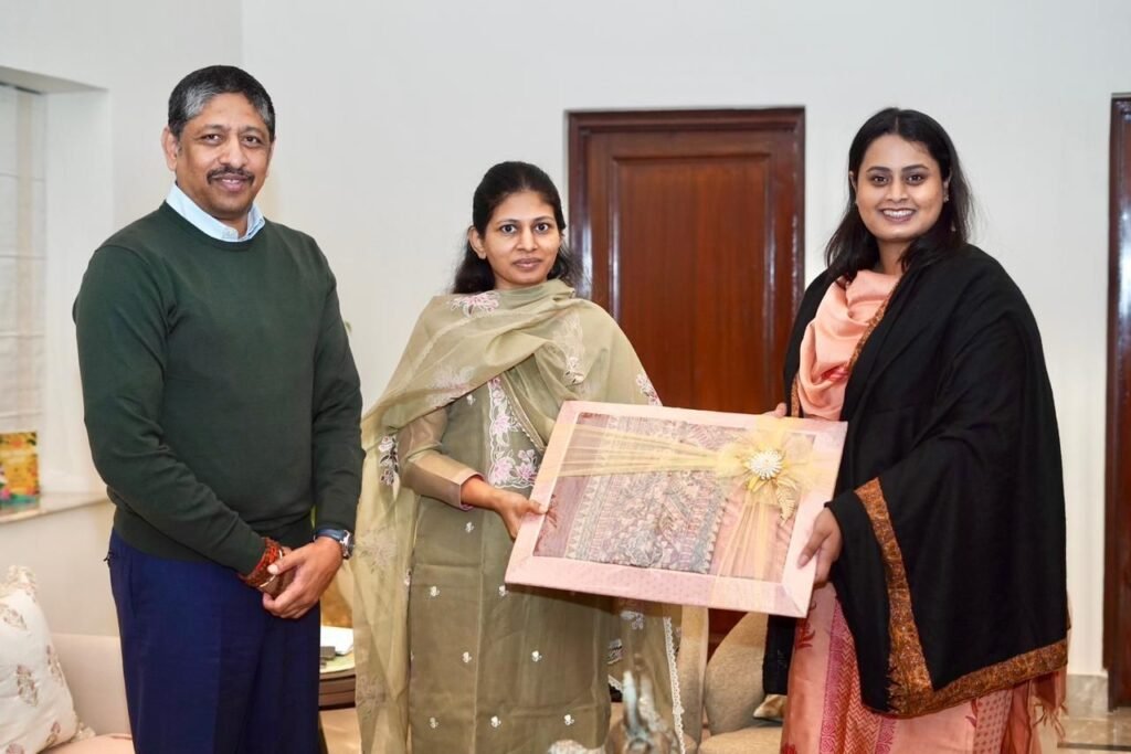 श्रेयसी सिंह ने डॉ.मंडाविया और रक्षा खडसे को मधुबनी पेंटिंग्स से सुसज्जित साड़ी,अंग वस्त्र और बोधि वृक्ष का प्रतीक चिन्ह उन्हें देकर उनका अभिनंदन किया।