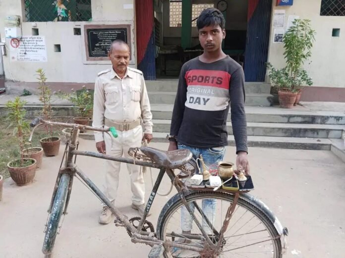 रात्रि गश्ती के दौरान चोरी के सामान के साथ युवक गिरफ्तार , चार मोबाइल, दो पीतल की घंटी सहित अन्य सामान बरामद