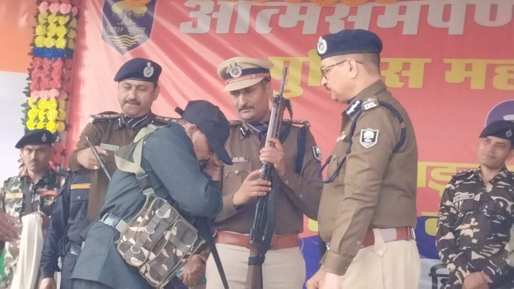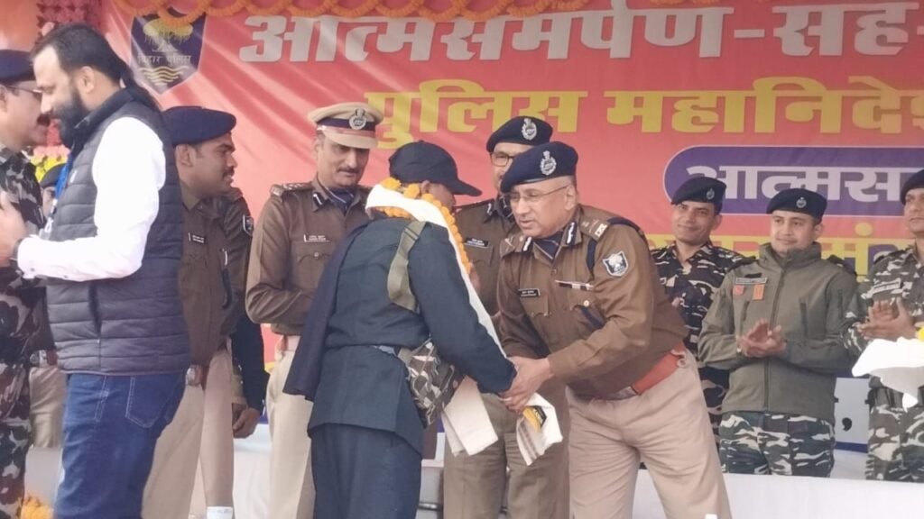 वरीय पुलिस अधिकारियों की मौजूदगी में मुंगेर में तीन कुख्यात नक्सलियों का आत्मसमर्पण