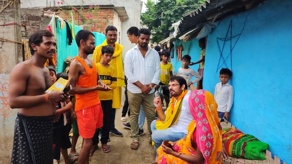 जनसुराज प्रत्याशी डॉ. संतोष का जनसंपर्क — सादगी और संवाद से जीता लोगों का दिल।