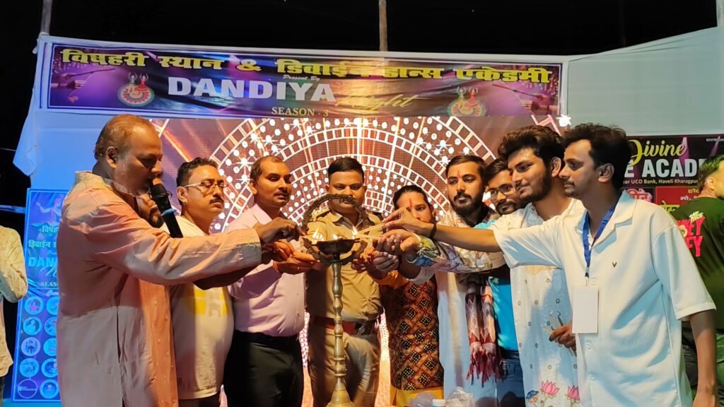 हवेली खड़गपुर नगर के विषहरि दुर्गा मंदिर प्रांगण में सोमवार की देर संध्या डिवाइन डांस एकेडमी के तत्वावधान में भव्य डांडिया नाइट सीज़न-3 का आयोजन किया गया। कार्यक्रम में शहर ही नहीं बल्कि आसपास के ग्रामीण इलाकों से भी भारी संख्या में लोग शामिल हुए।