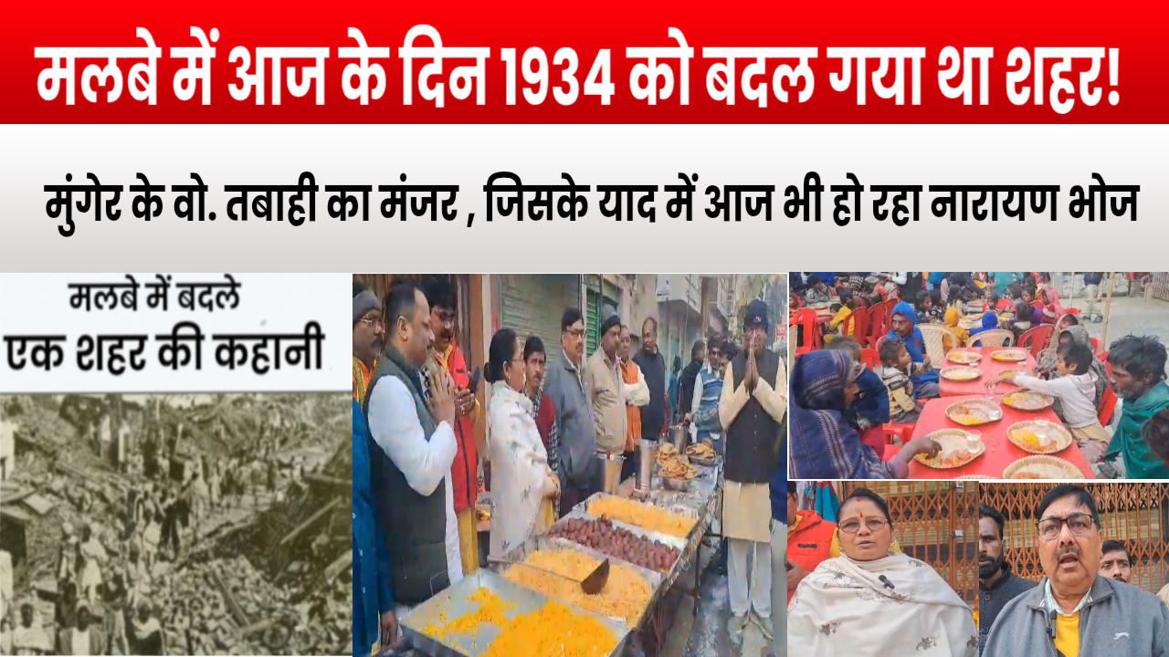 मुंगेर में 15 जनवरी को वर्ष 1934 के विनाशकारी भूकंप में जान गंवाने वाले 1434 लोगों की स्मृति में श्रद्धांजलि कार्यक्रम का आयोजन किया गया। भूकंप दिवस समिति की ओर से आयोजित इस कार्यक्रम में शहर के गणमान्य नागरिकों के साथ बड़ी संख्या में आम लोग शामिल हुए। यह परंपरा पिछले 92 वर्षों से लगातार निभाई जा रही है, जो मुंगेर के इतिहास और सामूहिक स्मृति का महत्वपूर्ण हिस्सा बन चुकी है।